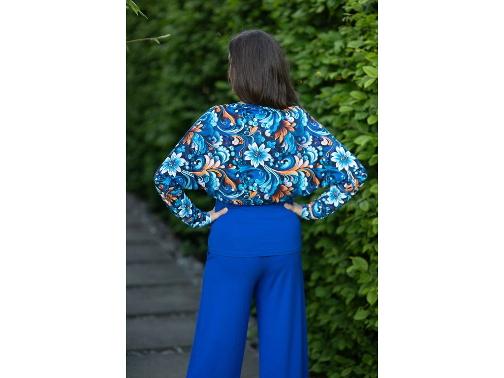 Bolerko je krátké s dlouhým rukávem, bez zapínání. Optimálně se hodí jako vrchní vrstva k šatům Kleopatra a tílkům Isis, ale skvěle oživí i další horní díly vašeho oblečení.