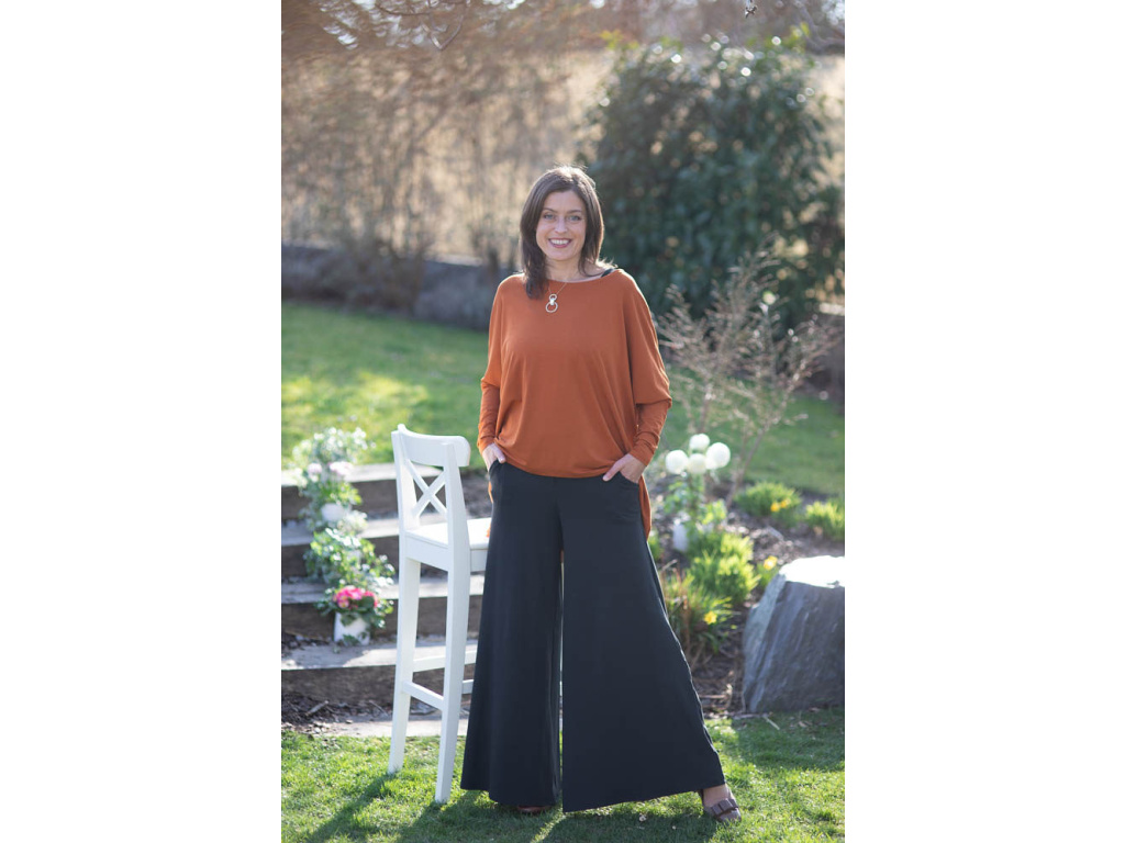 NÁŠ TYP: Vytvořte si postupně krásný, originální komplet který se vám bude jednoduše kombinovat, vrstvit a ve kterém se bude cítit krásně a elegantně po celý den. Kalhoty jsou v pase šité do široké manžety, která je v přední části průžná a do zadní části je všita guma pro větší pohodlí. V pase jsou poutka pro možnost vložení vlastního pásku nebo barevného šátku. Kalhoty Adina mají vyšší pas než kalhoty Inanna.
