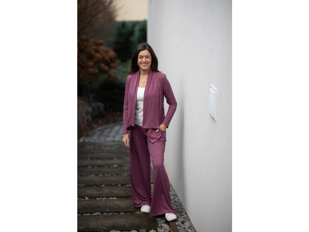 NÁŠ TYP: Vytvořte si postupně krásný, originální komplet který se vám bude jednoduše kombinovat, vrstvit a ve kterém se bude cítit krásně a elegantně po celý den. Kalhoty jsou v pase šité do široké manžety, která je v přední části průžná a do zadní části je všita guma pro větší pohodlí.