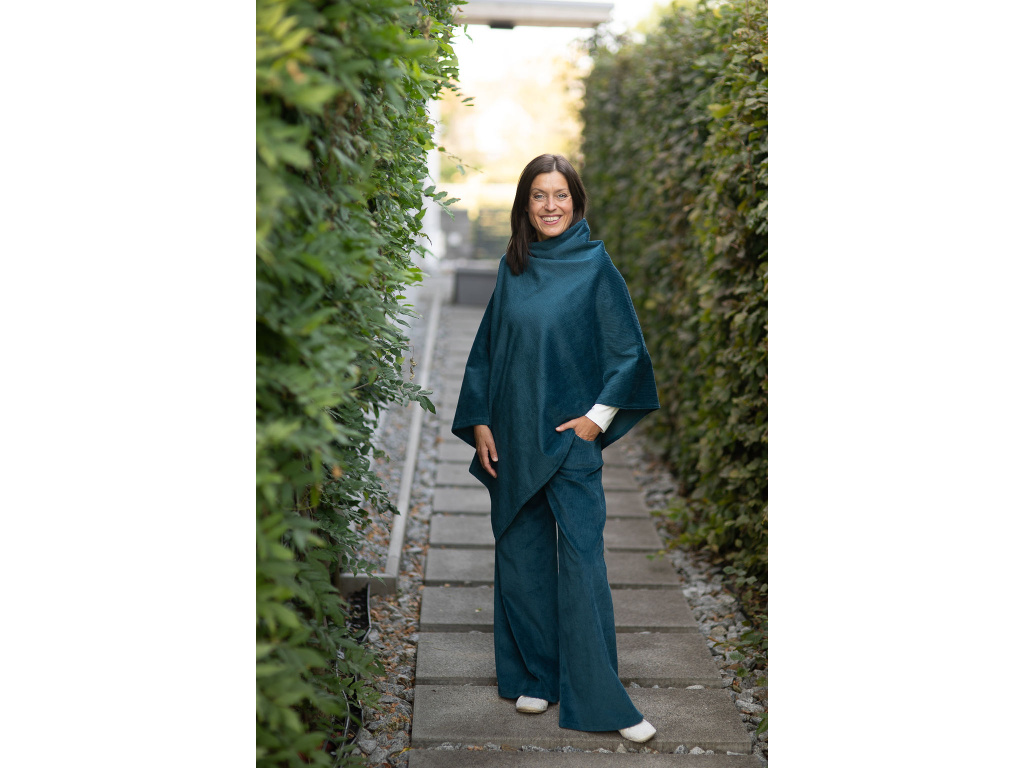 Pončo Freya manšestrové petrolejové