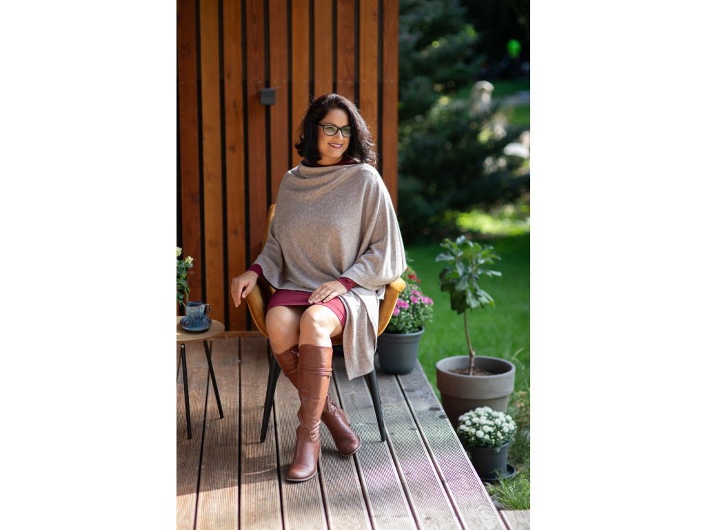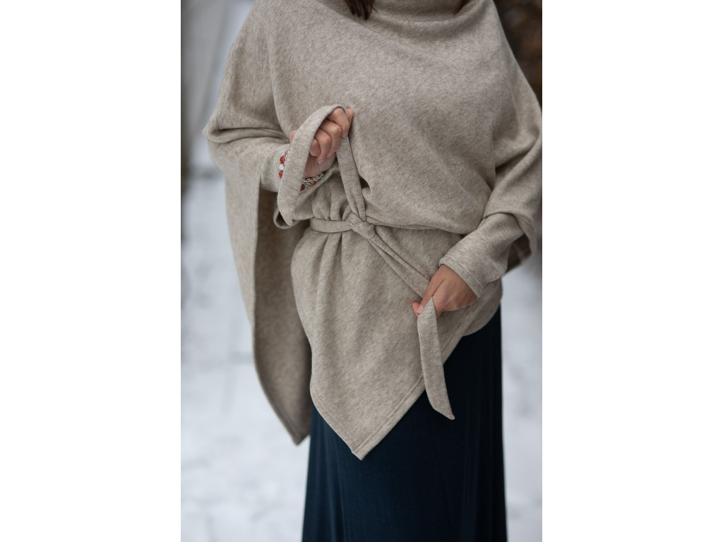 Pončo Freya svetrové světlá káva