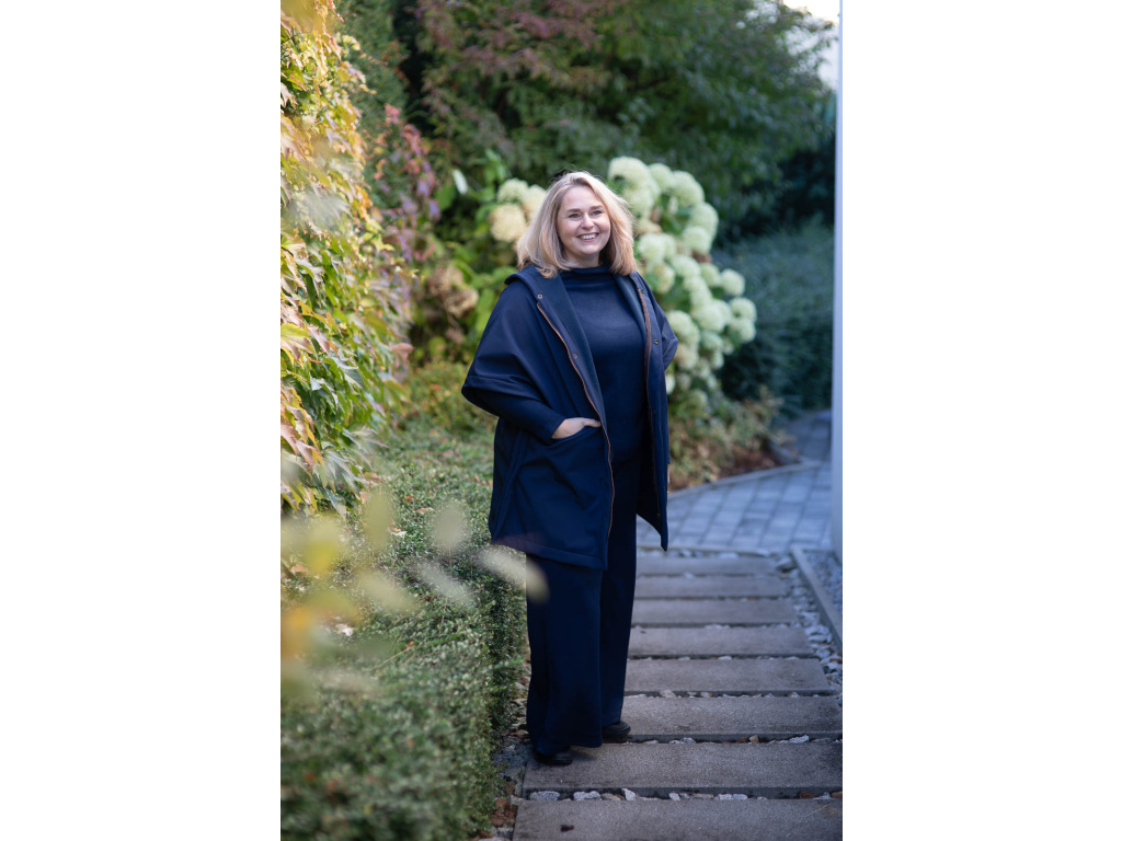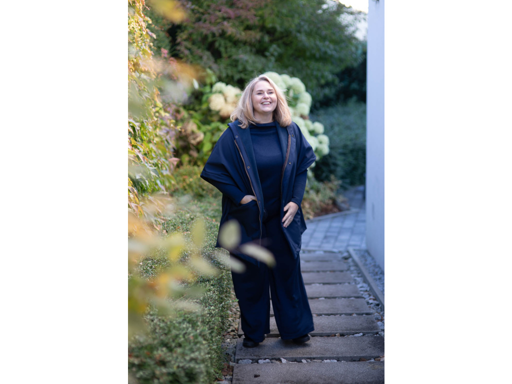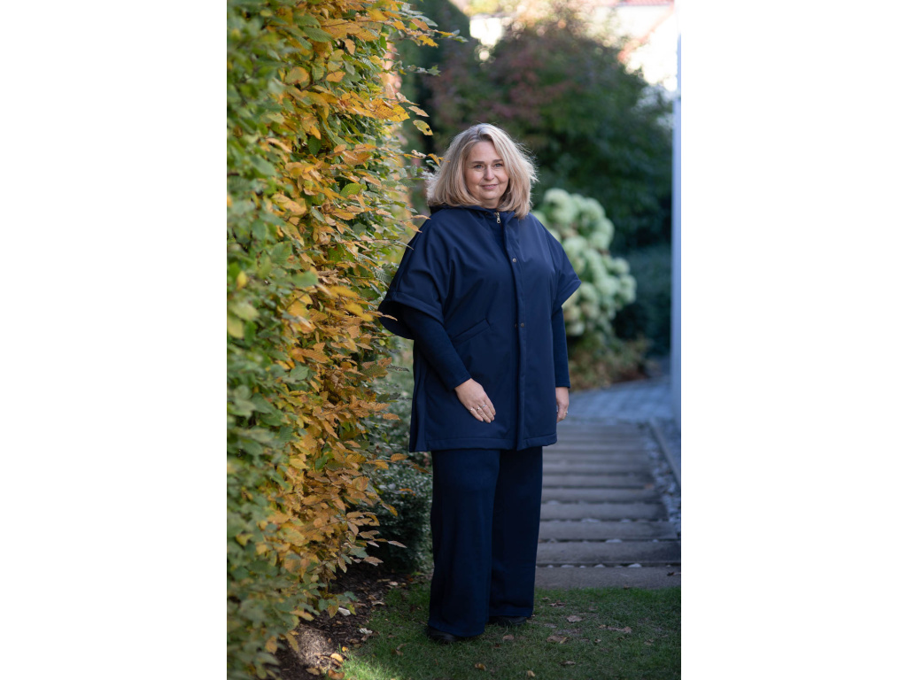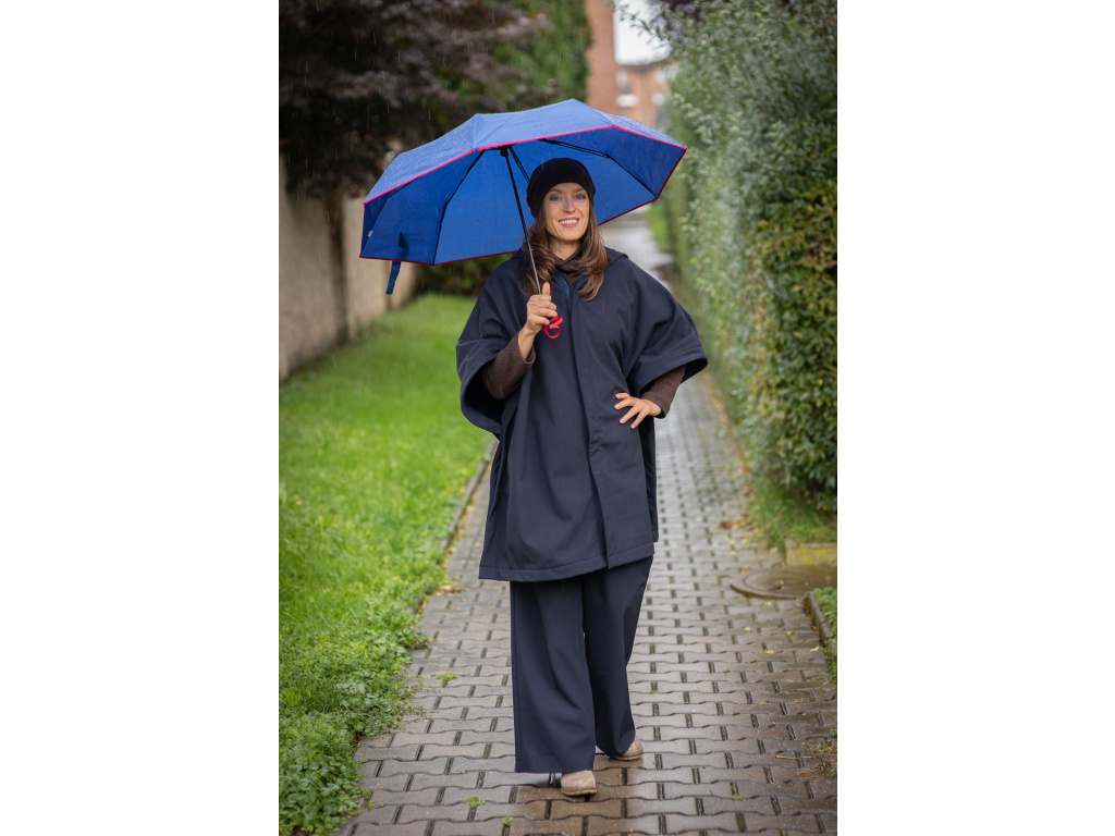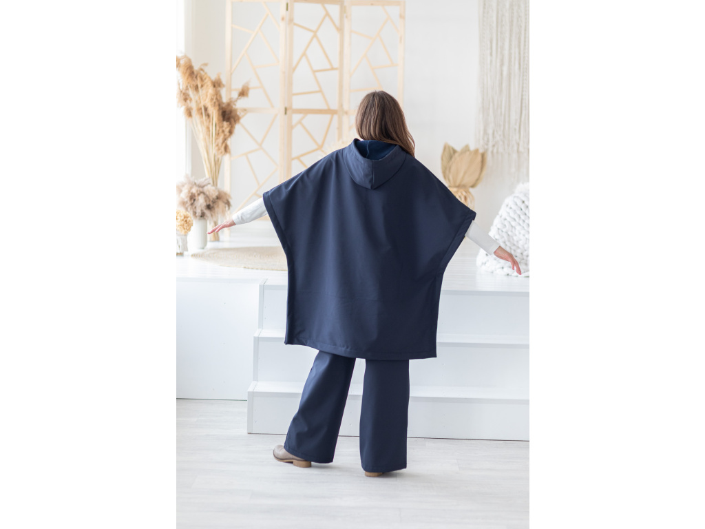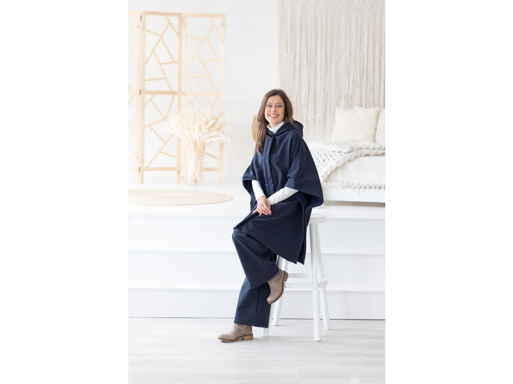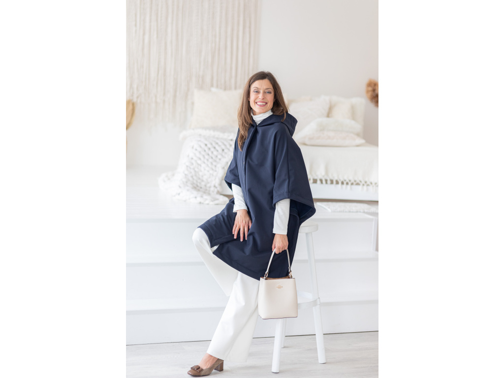 Toto pončo vzniklo z mé osobní potřeby cítit se v sychravém, deštivém počasí elegantně při všech mých každodenních činnostech. Jako třeba venčení pejska, obchodní schůzky atd.