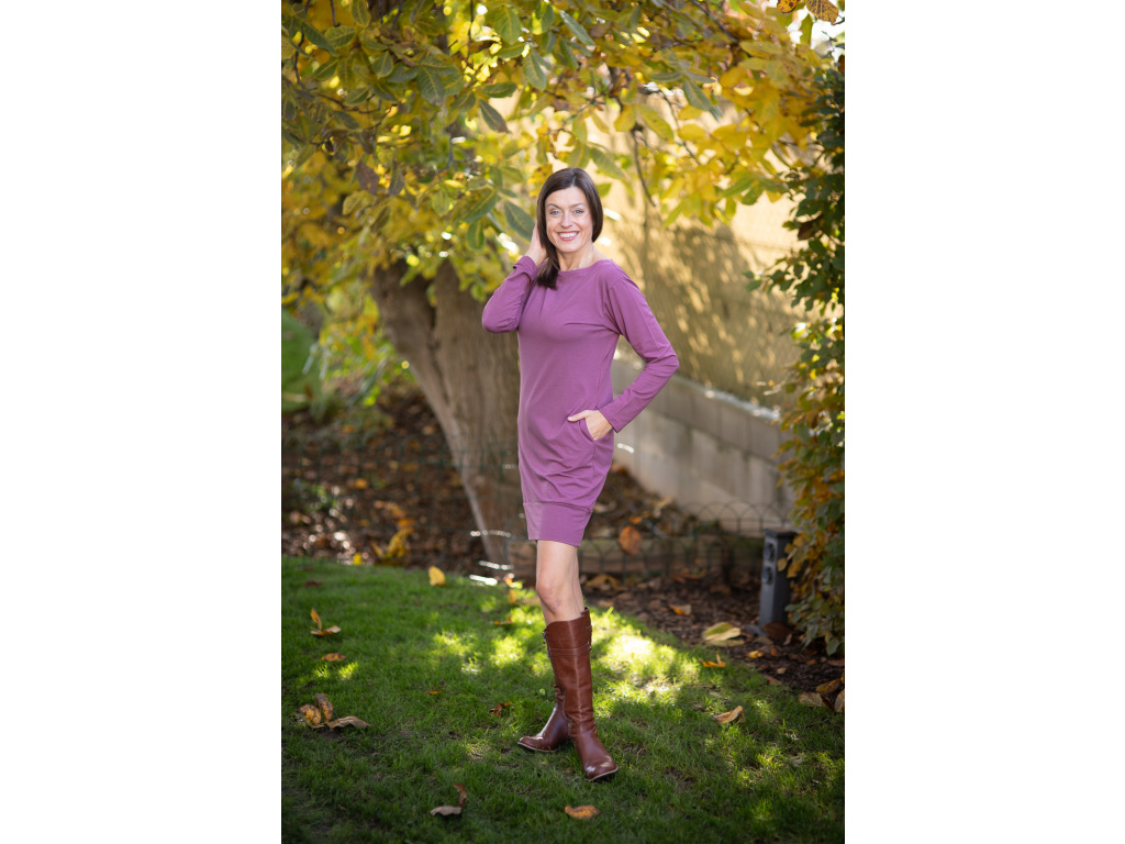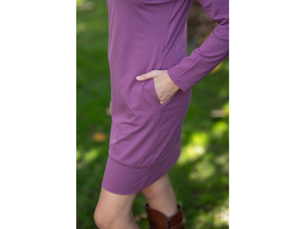Šaty Charis úzký rukáv původní šeříková