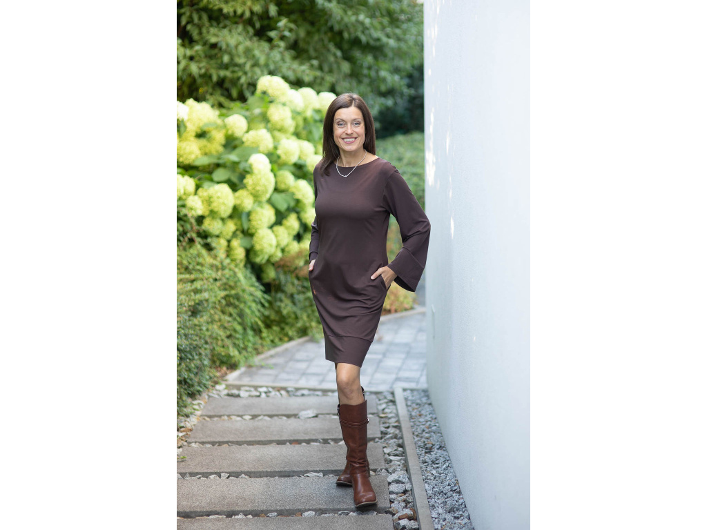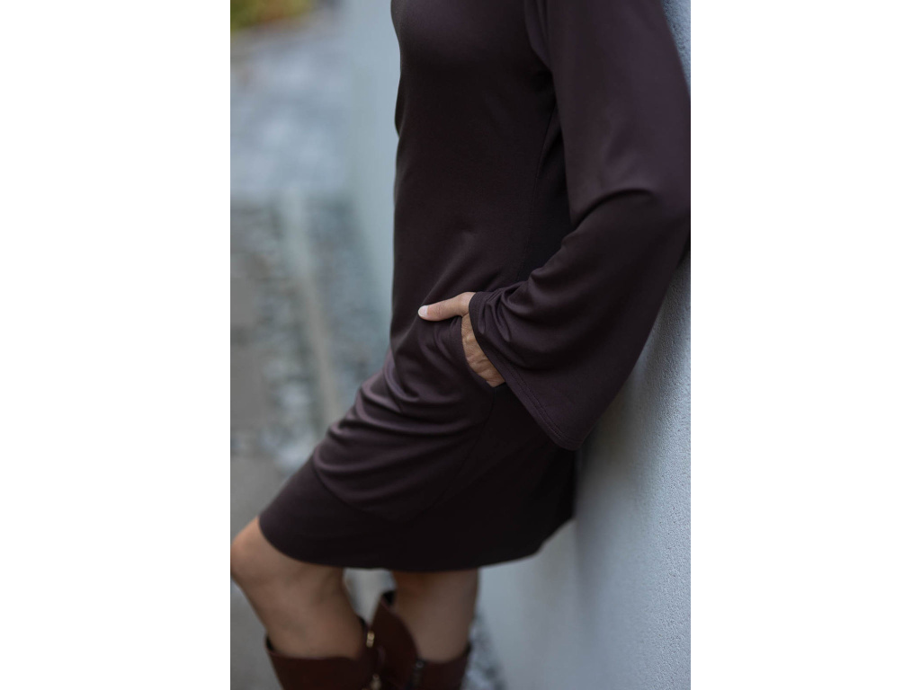 Šaty Charis zvonový rukáv čokoládové