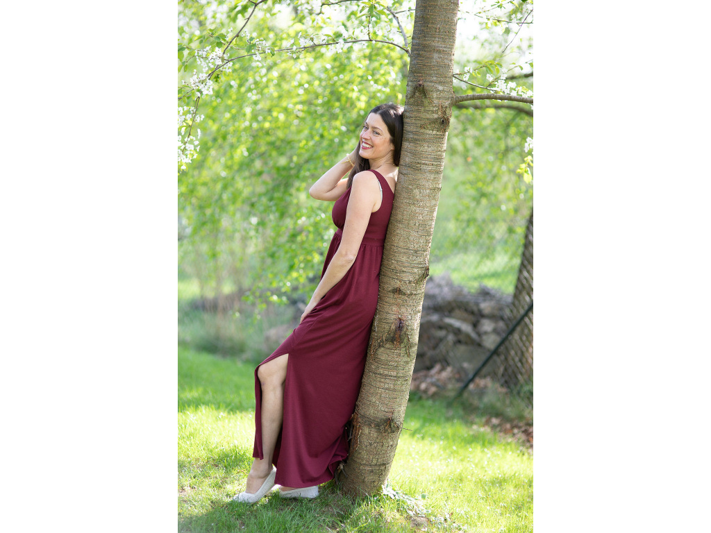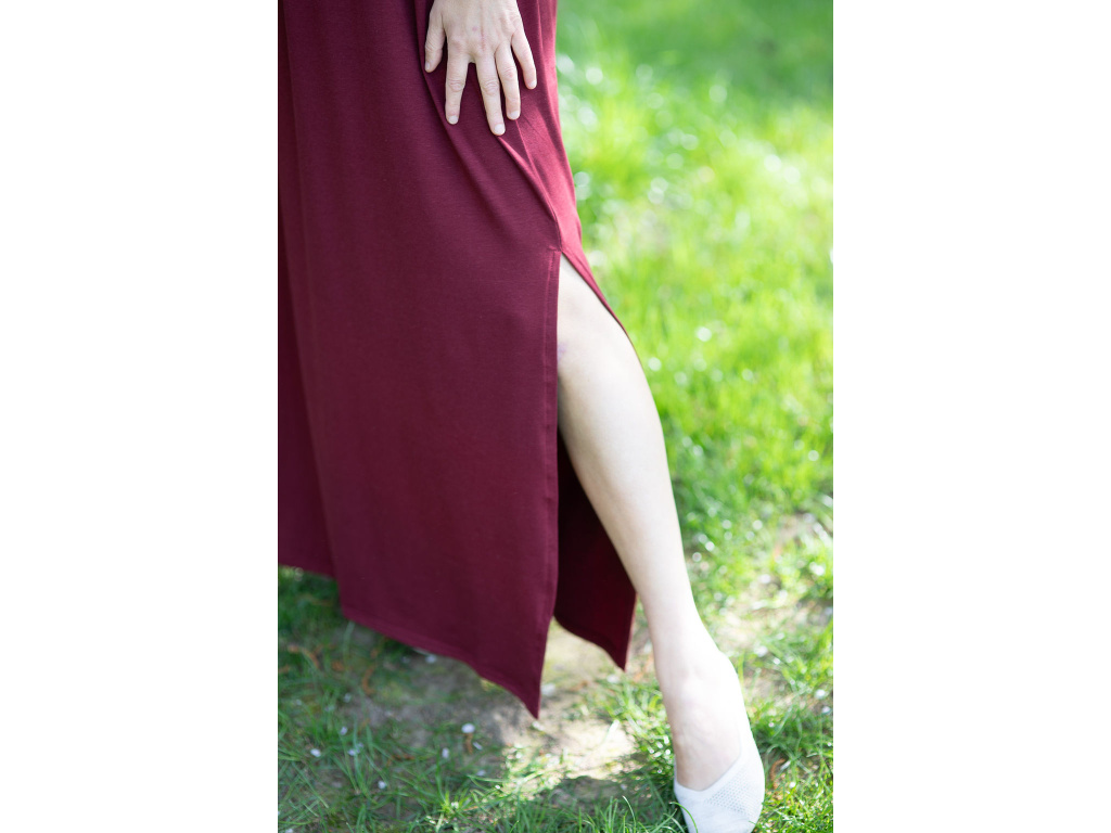 Šaty Kleopatra dlouhé s rozparkem vínové