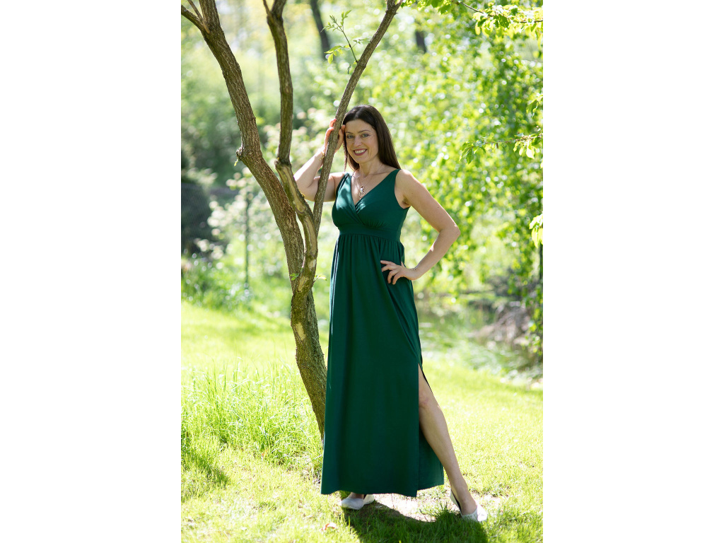 Šaty Kleopatra dlouhé s rozparkem zelené