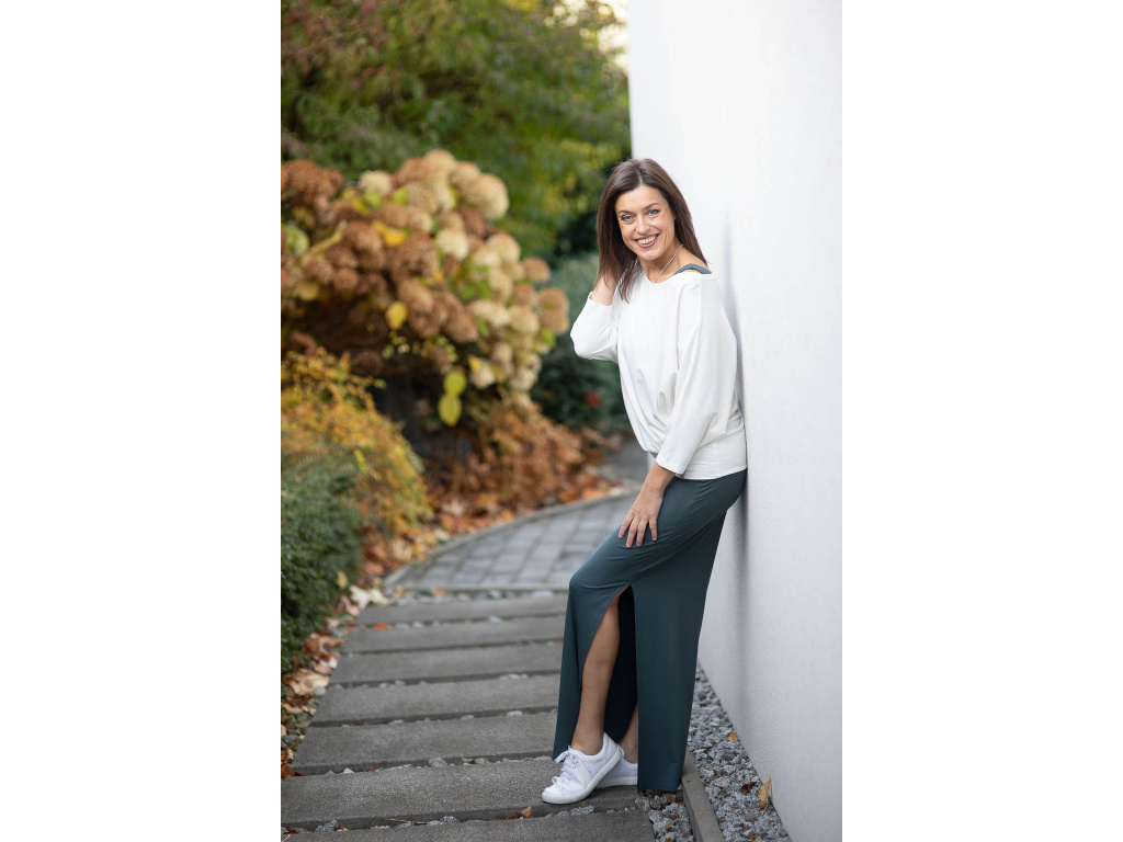 Díky střihu a díky materiálu, ze kterého je sukně ušita, vás nikde nebude nic tlačit. Budete vypadat elegantně, a přesto v ní budete moci pohodlně strávit celý den.