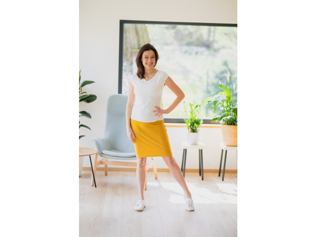 Sukně Eset je ušitá z velmi příjemného, antibakteriálního bambusu ve směsi s bavlnou. V pase nemá gumu, takže ji na těle téměř neucítíte.
