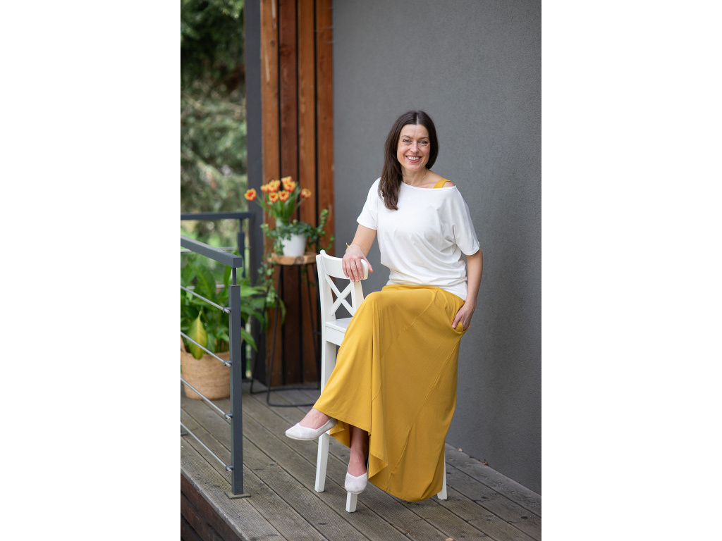 Přejete-li si pořídit sukni celoročku ve které se budete cítit krásně, elegantně a pohodlně po celý den tak je dlouhá sukně Iris přesně to pravé pro vás. Díky střihu (sukně nemá v pase gumu) a díky materiálu, ze kterého je sukně ušita, vás nikde nebude nic tlačit.