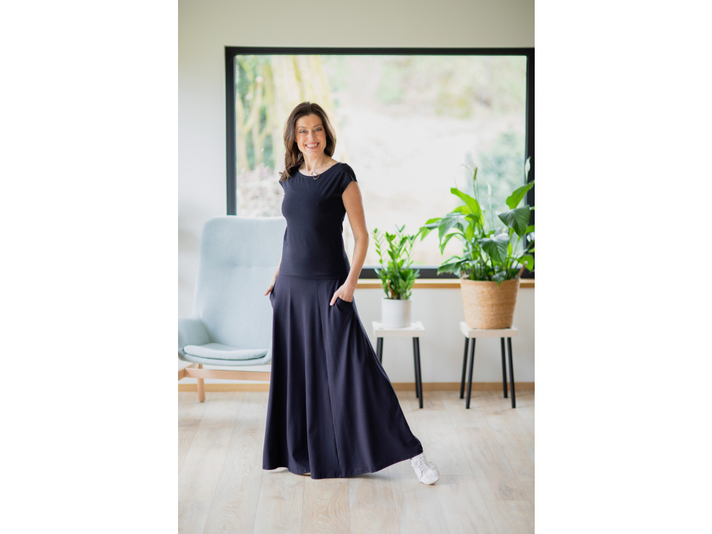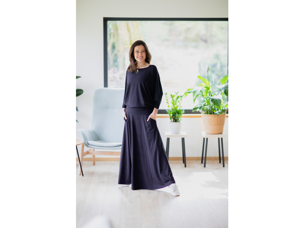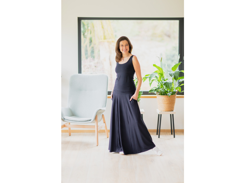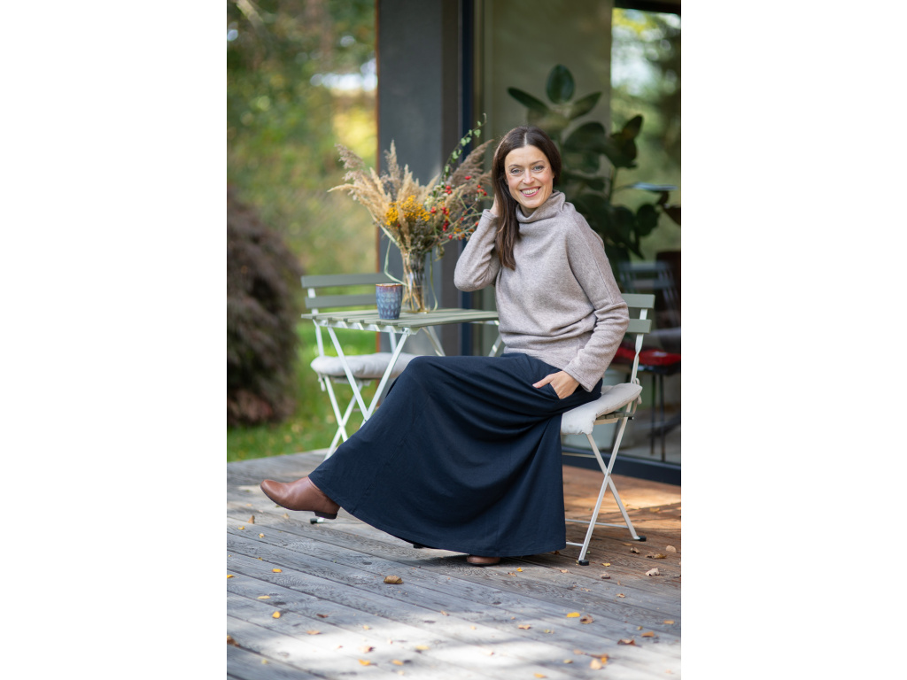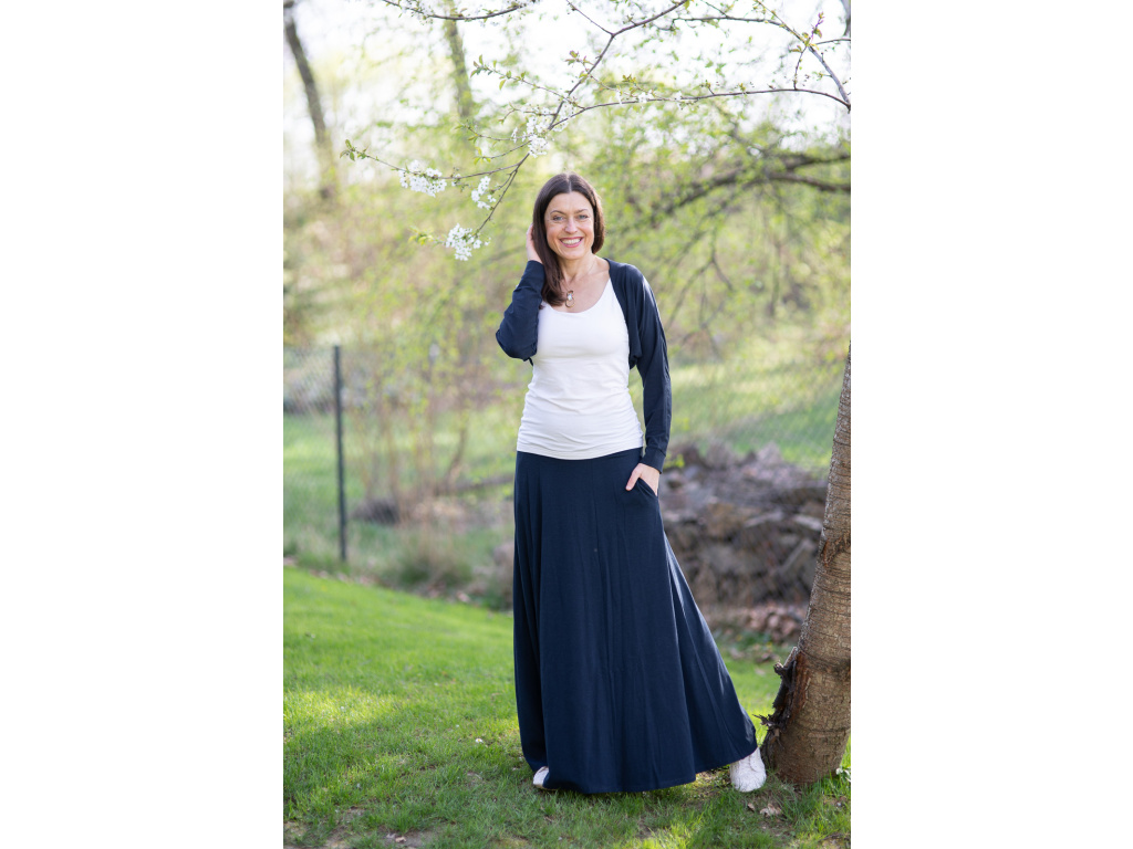 Přejete-li si pořídit sukni celoročku ve které se budete cítit krásně, elegantně a pohodlně po celý den tak je dlouhá sukně Iris přesně to pravé pro vás. Díky střihu (sukně nemá v pase gumu) a díky materiálu, ze kterého je sukně ušita, vás nikde nebude nic tlačit.