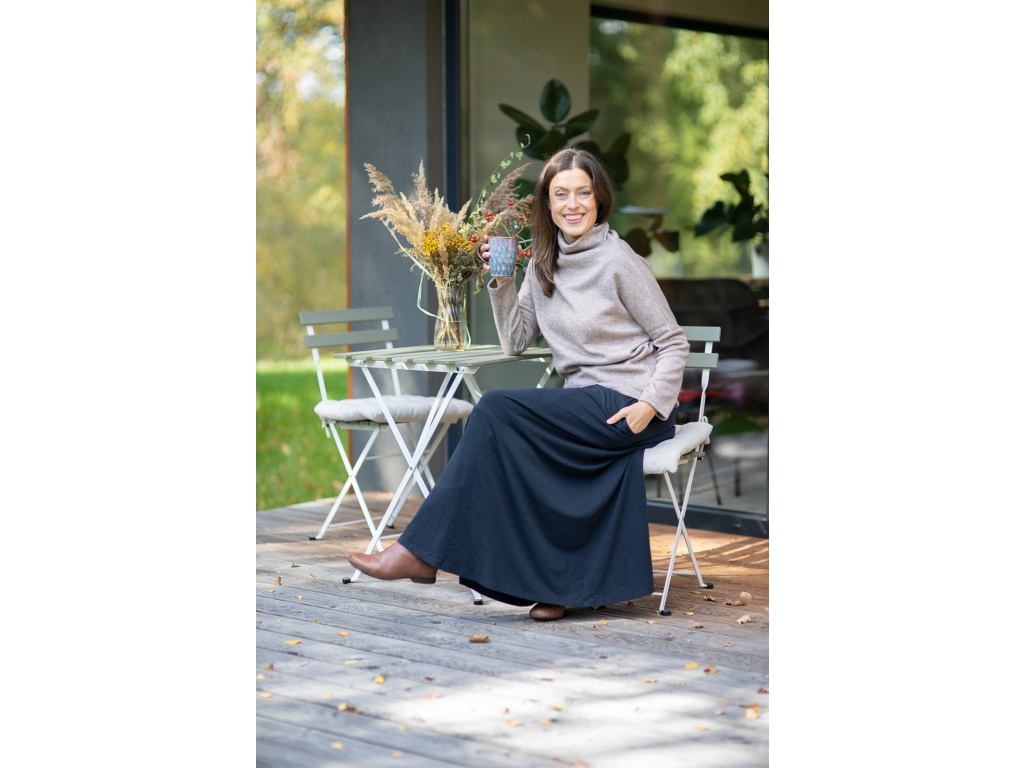 Přejete-li si pořídit sukni celoročku ve které se budete cítit krásně, elegantně a pohodlně po celý den tak je dlouhá sukně Iris přesně to pravé pro vás. Díky střihu (sukně nemá v pase gumu) a díky materiálu, ze kterého je sukně ušita, vás nikde nebude nic tlačit.