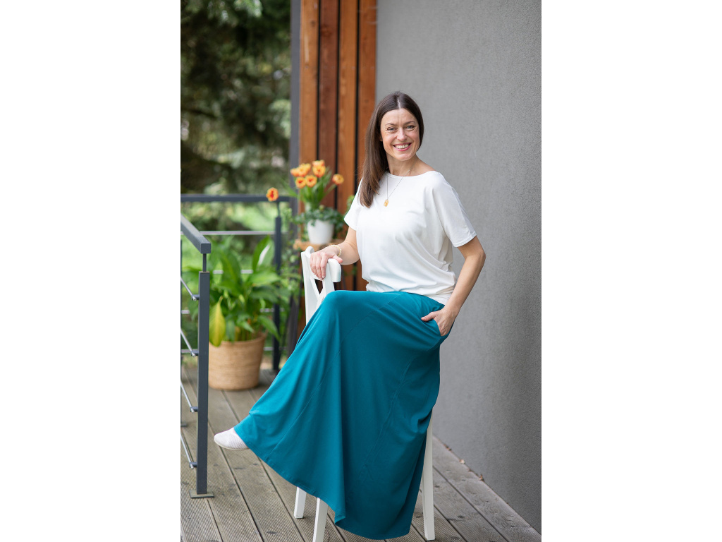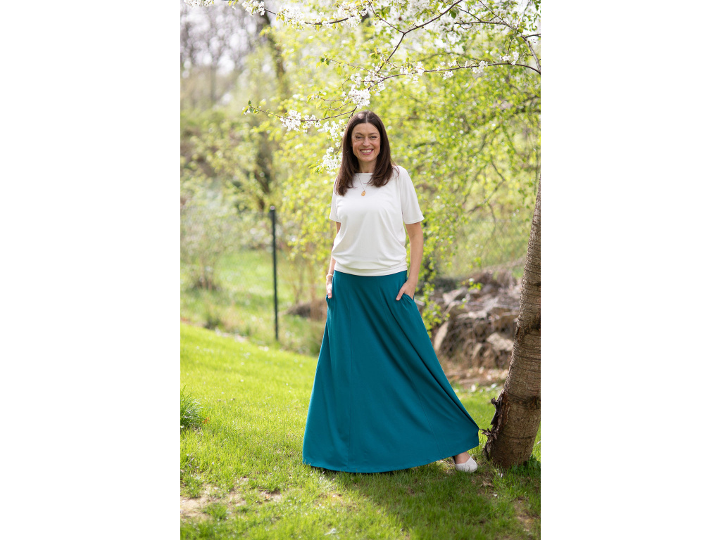 Přejete-li si pořídit sukni celoročku ve které se budete cítit krásně, elegantně a pohodlně po celý den, tak je dlouhá sukně Iris přesně to pravé pro vás. Díky střihu (sukně nemá v pase gumu) a díky materiálu, ze kterého je sukně ušita, vás nikde nebude nic tlačit.