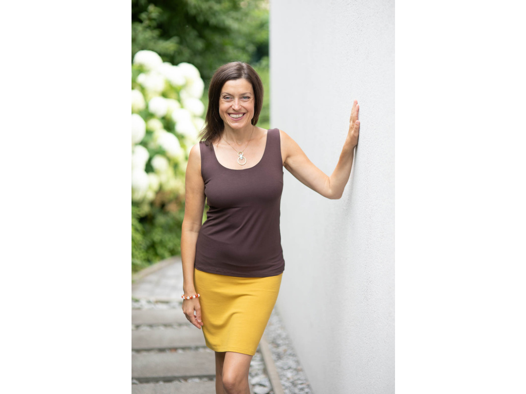 Tílko Astaraia s všitou braletkou klasická délka čokoládové