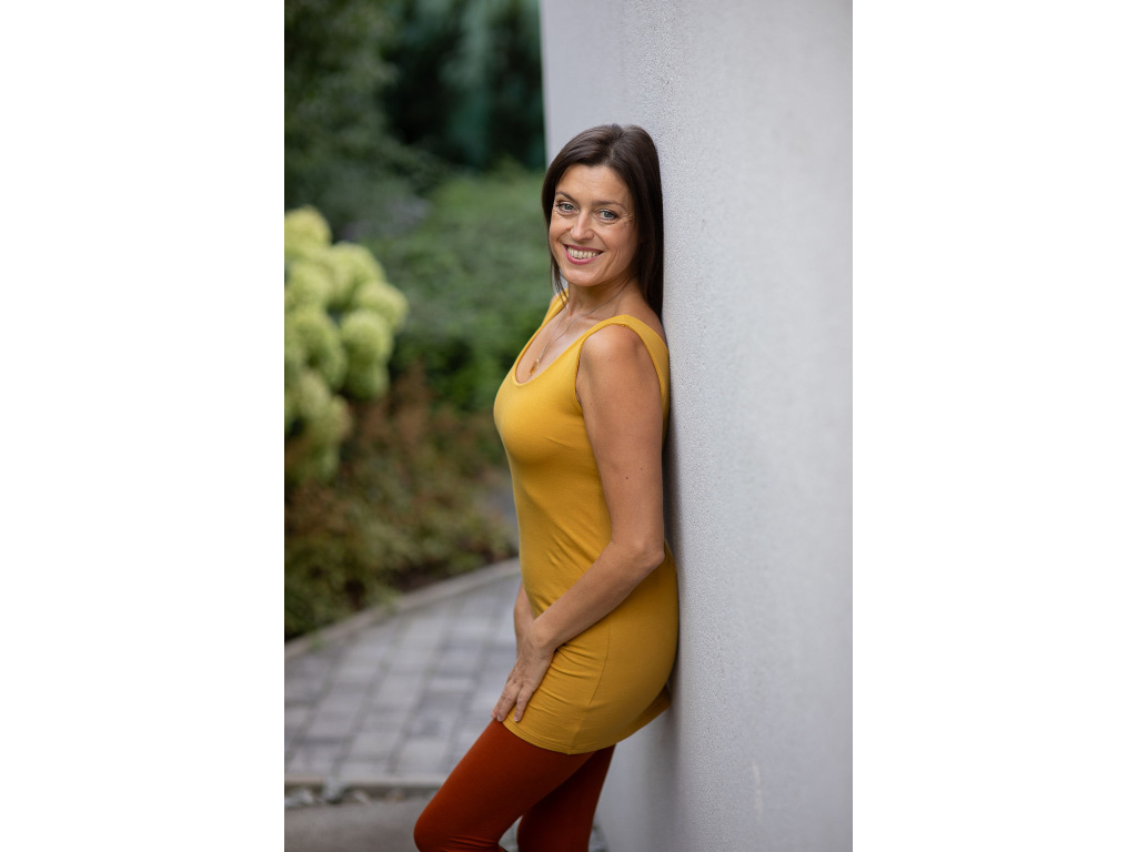 Tílko Astaraia s všitou braletkou prodloužené hořčicové