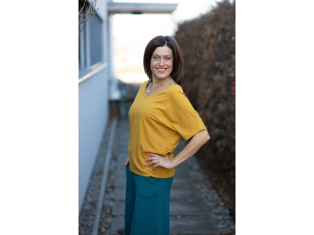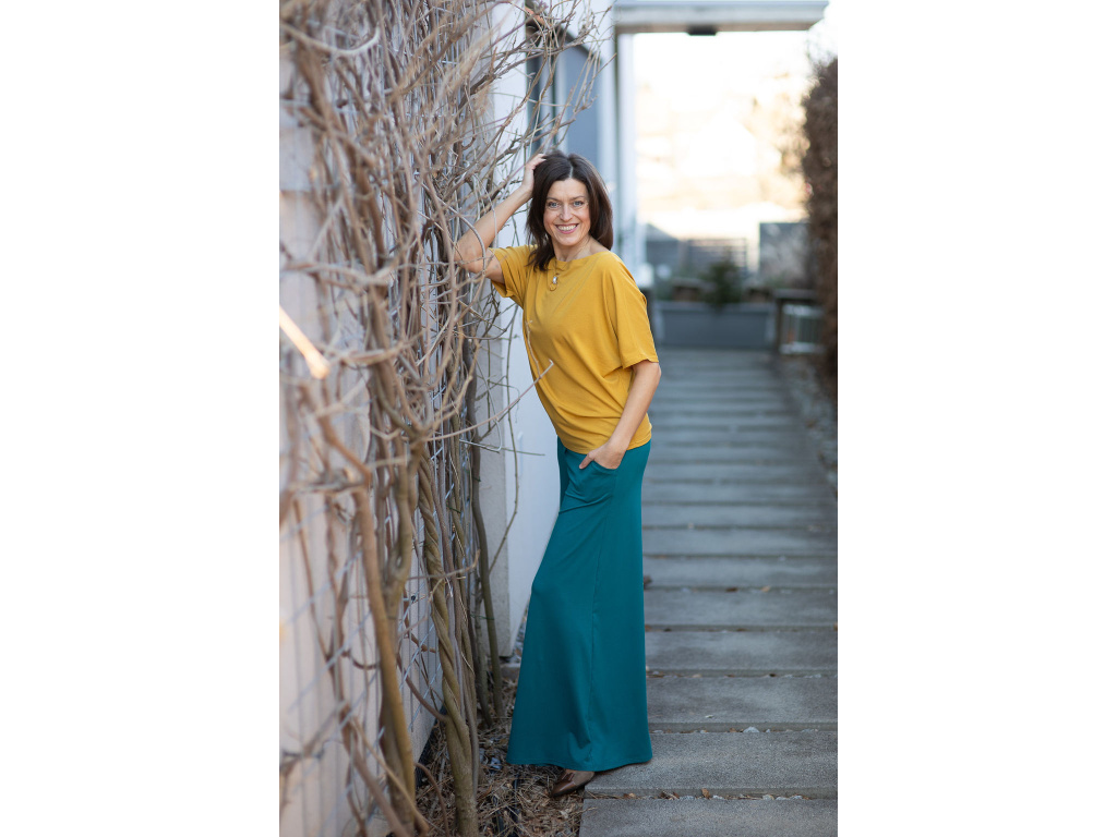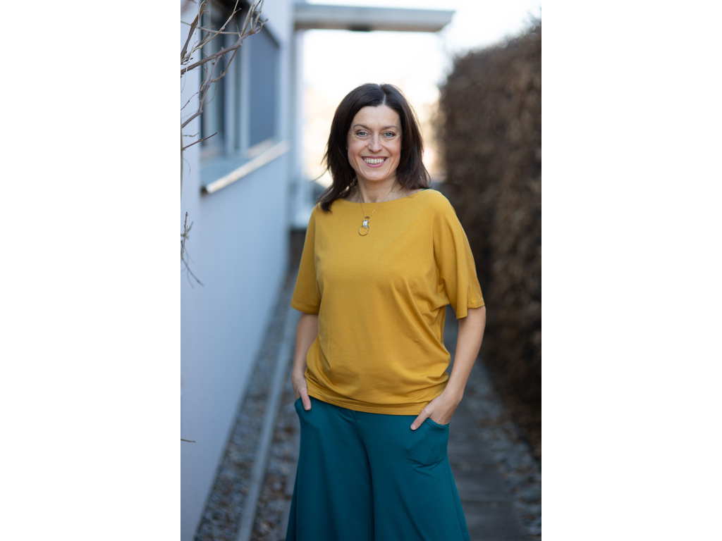 Triko Roma je oboustranné a tak si vlastně kupujete dva v jednom, z jedné strany je velice slušivý véčkový výstřih a z druhé strany je výstřih lodičkový.