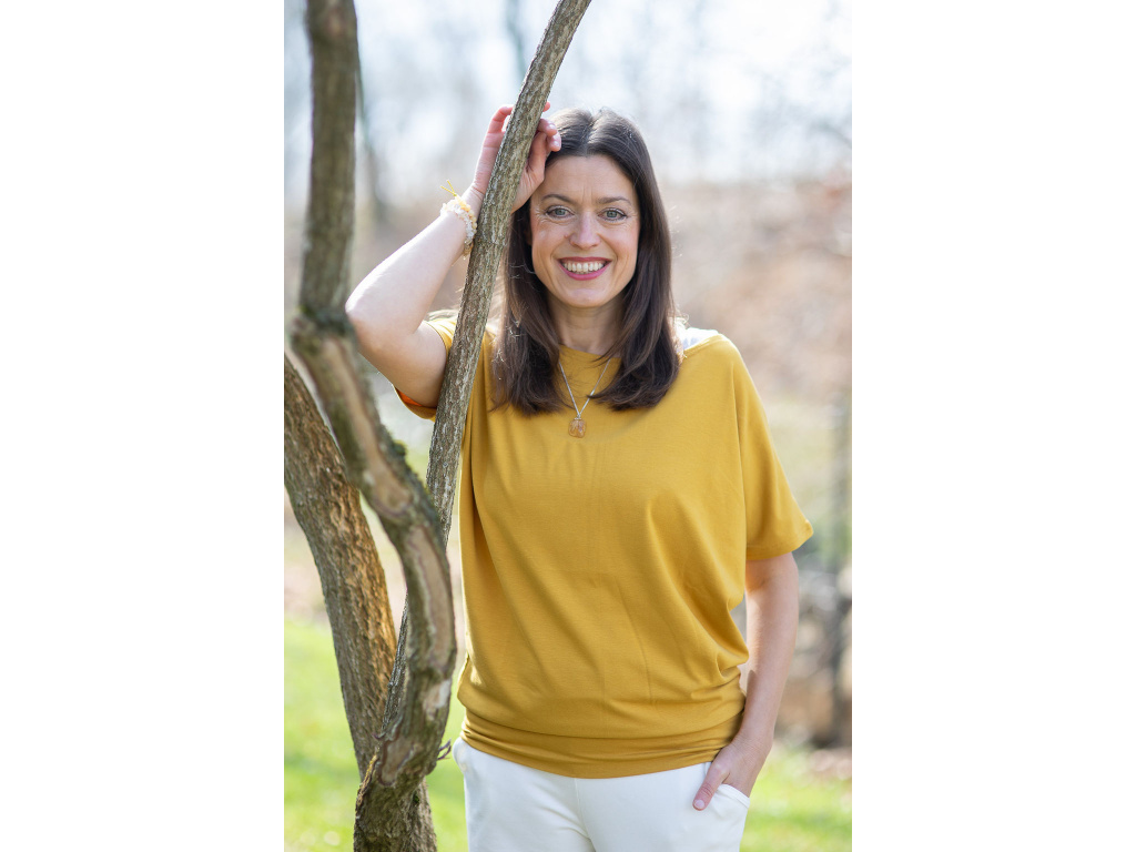 Jeho výhodou je, že sluší opravdu všem typům postav a velikostí. A to díky skvěle promyšlenému střihu. Triko se hned od spodní manžety směrem nahoru rozšiřuje, a tak vás nebude nikde nic obepínat a všechno, co má zůstat skryto, skryté zůstane. Má lodičkový výstřih.