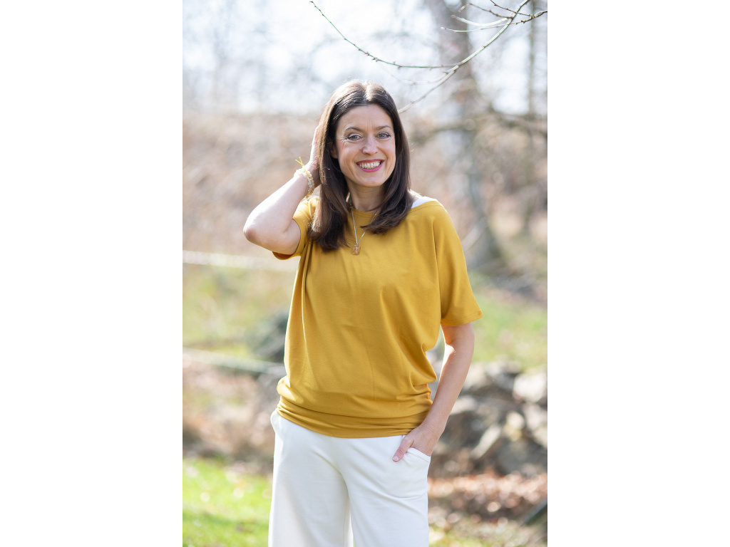 Toto triko si prostě zamilujete, je velmi elegantní, variabilní, slušivé a dá nosit úplně ke všemu, co vás napadne – k úzkým i širokým kalhotám, k sukním všech střihů a délek.