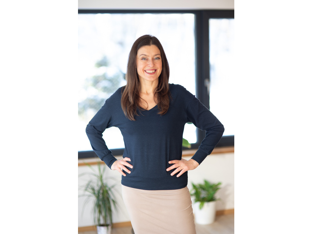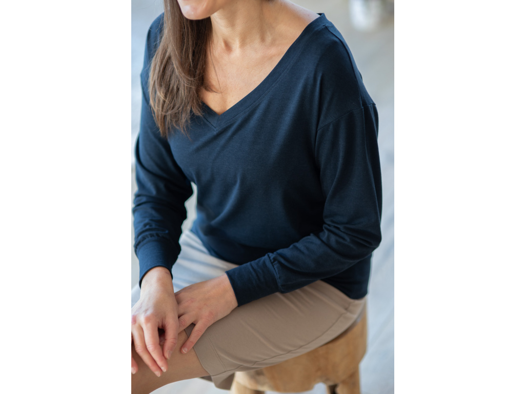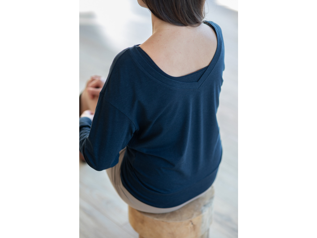 Triko Seléna je oboustranné a tak si vlastně kupujete dva v jednom, z jedné strany je velice slušivý véčkový výstřih a z druhé strany je výstřih lodičkový.