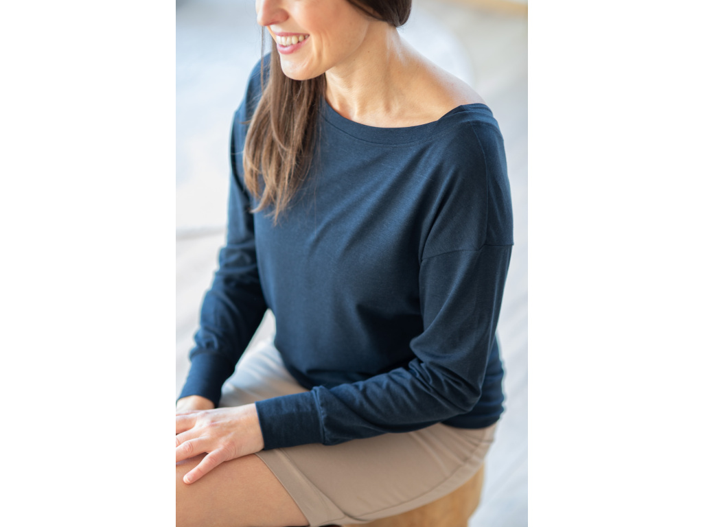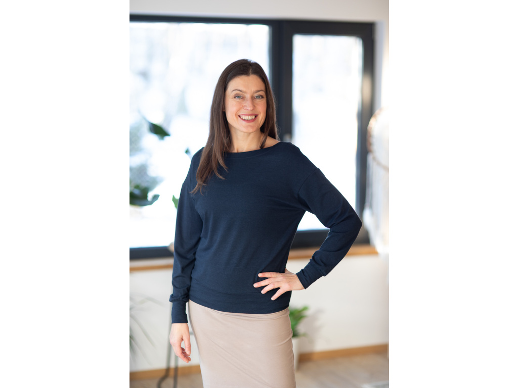 Triko Seléna je oboustranné a je k dispozici ve variantě s prostřiženými rukávy a neprostřiženými.