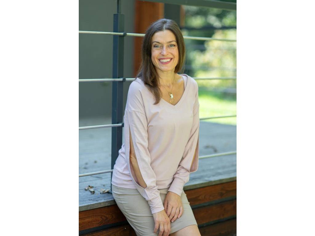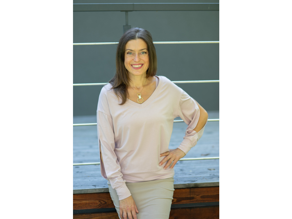 Triko Seléna je oboustranné a je k dispozici ve variantě s prostřiženými rukávy a neprostřiženými.