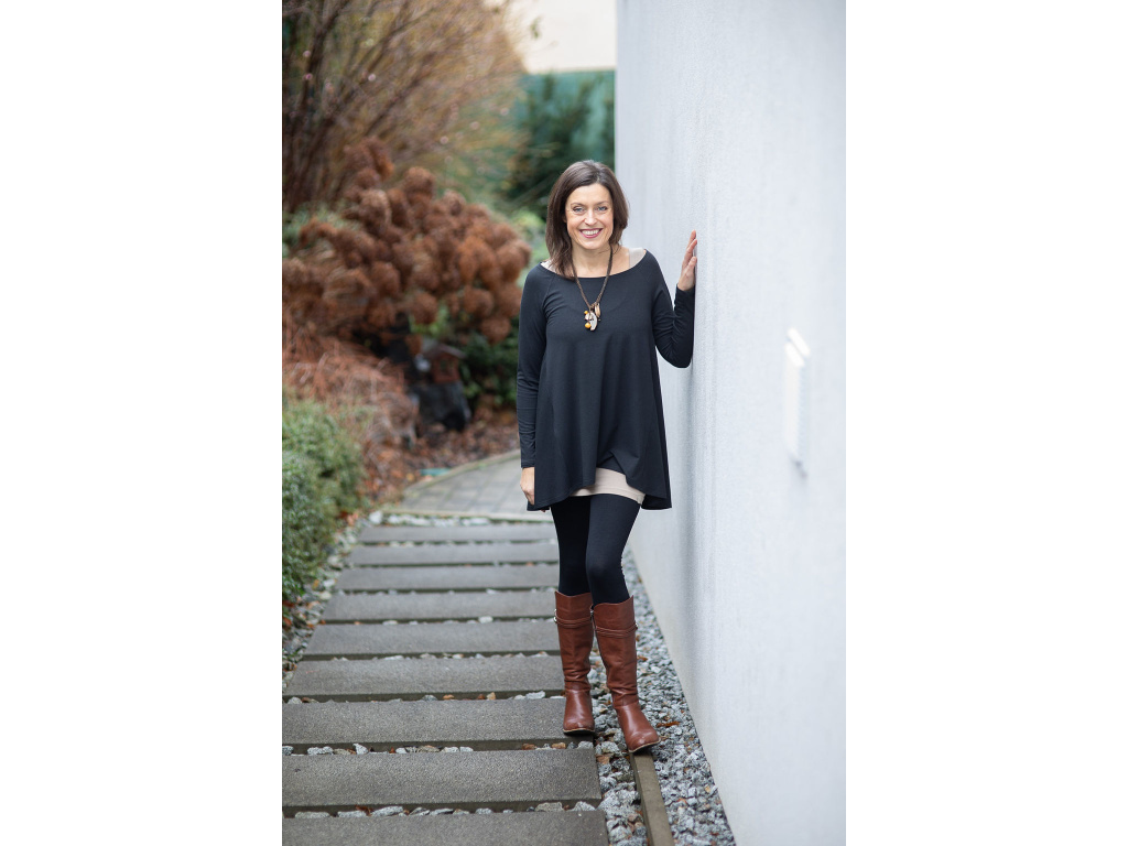 Tunika Artemis má dvě hlavní výhody: hodí se ke všem typům postav a dá se nosit celoročně. Můžete si ji dopřát s 3/4 rukávem nebo s dlouhým rukávem, podle toho, co je vám příjemnější.