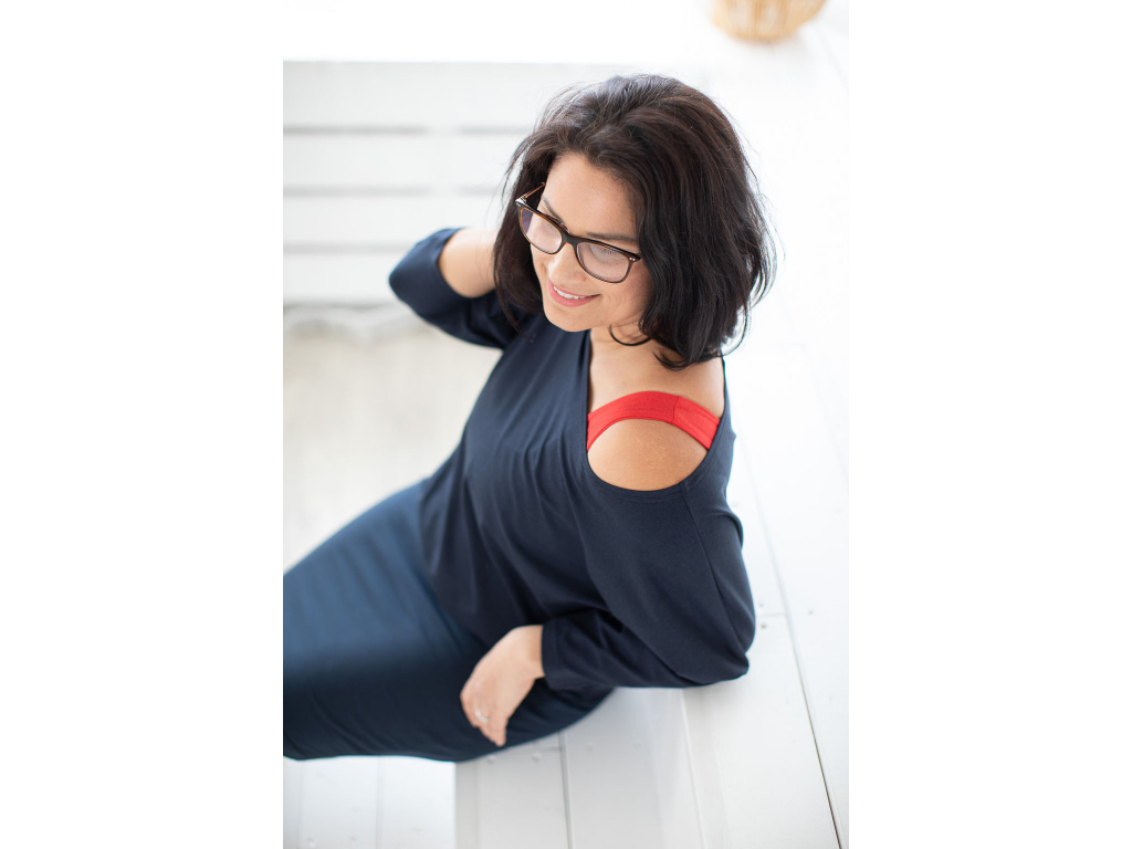 Jeho další výhodou je, že sluší opravdu všem typům postav a velikostí. A to díky skvěle promyšlenému střihu. Triko se hned od spodní manžety směrem nahoru rozšiřuje, a tak vás nebude nikde nic obepínat a všechno, co má zůstat skryto, skryté zůstane. Má lodičkový výstřih a krásné netopýří rukávy.