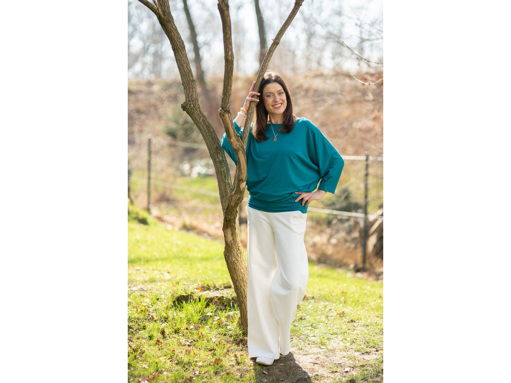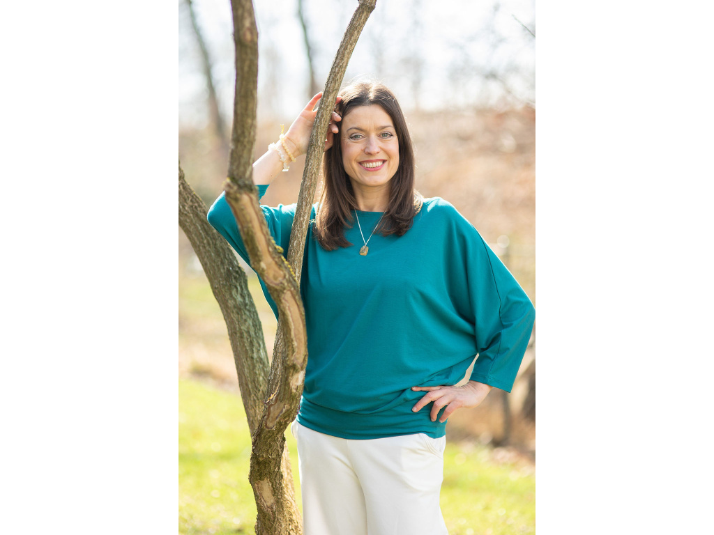 Další výhodou je, že sluší opravdu všem typům postav a velikostí. A to díky skvěle promyšlenému střihu. Triko se hned od spodní manžety směrem nahoru rozšiřuje, a tak vás nebude nikde nic obepínat a všechno, co má zůstat skryto, skryté zůstane. Má lodičkový výstřih a krásné netopýří rukávy.